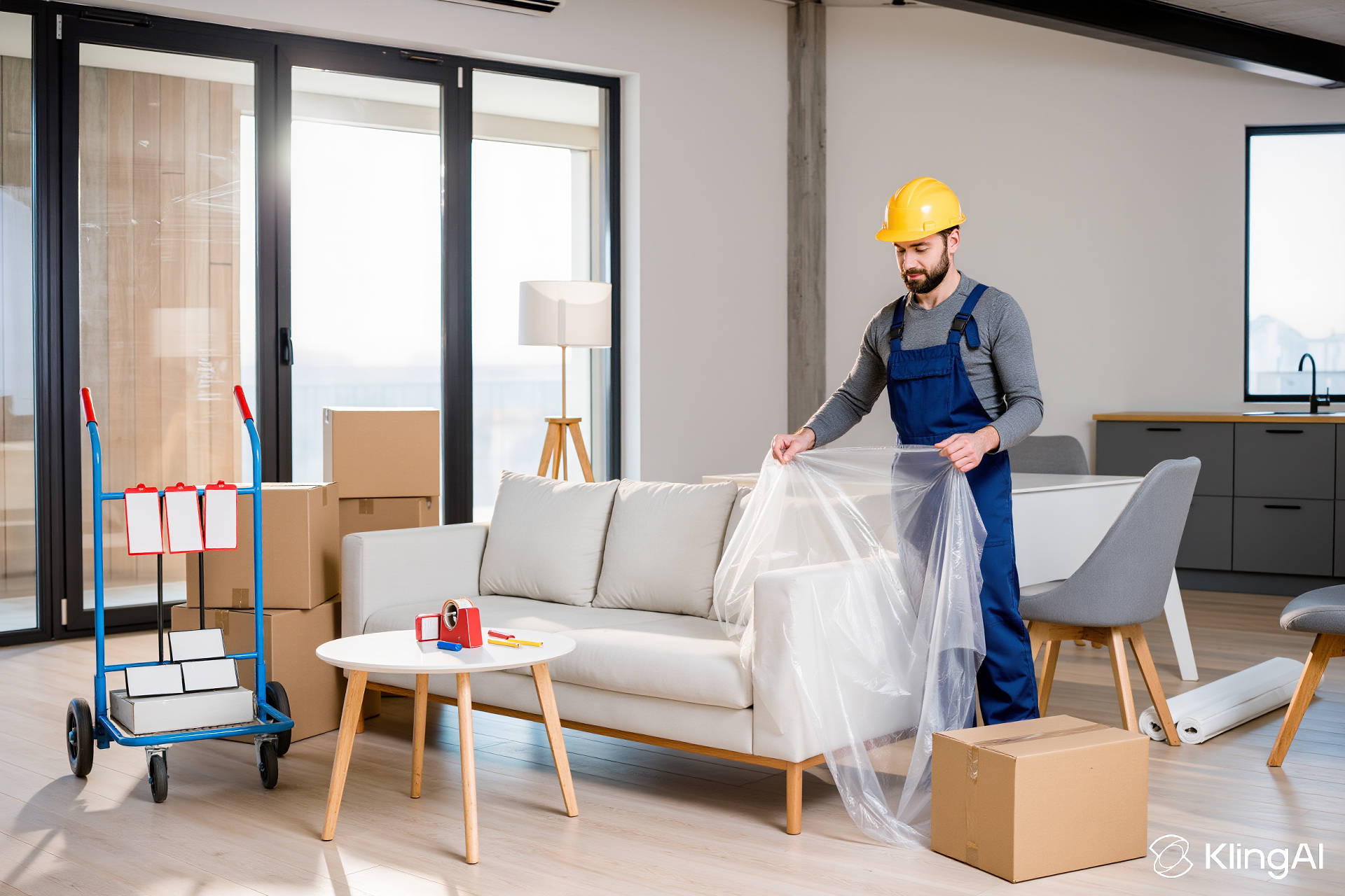 - Мебель обмотана плёнкой и защищена на углах.